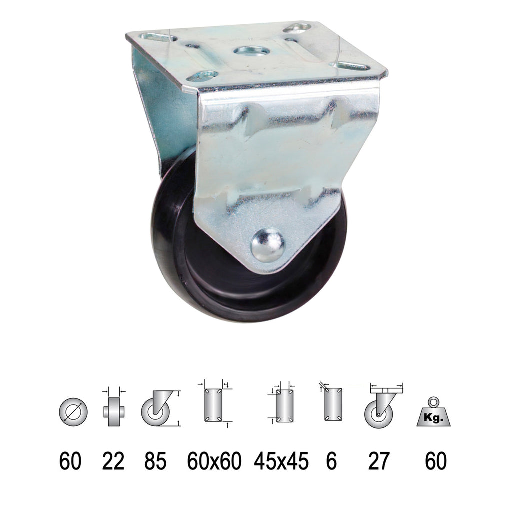 Rueda Domestica Poliamida Negra.Fija 60 mm.