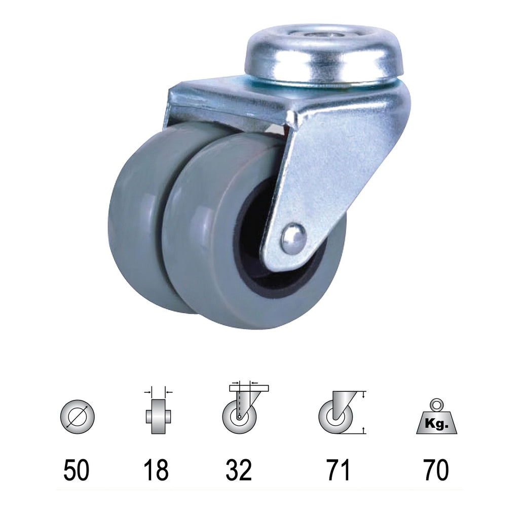 Rueda Doméstica Doble Poliamida Gris Pasante 50mm