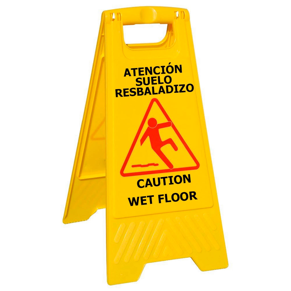 Cartel Atencion Suelo Mojado 64x30 cm.