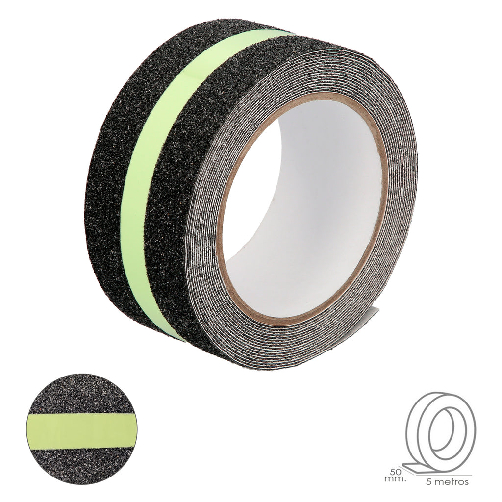 Cinta Antideslizante Fluorescente 50 mm x 5 metros. Uso Doméstico.