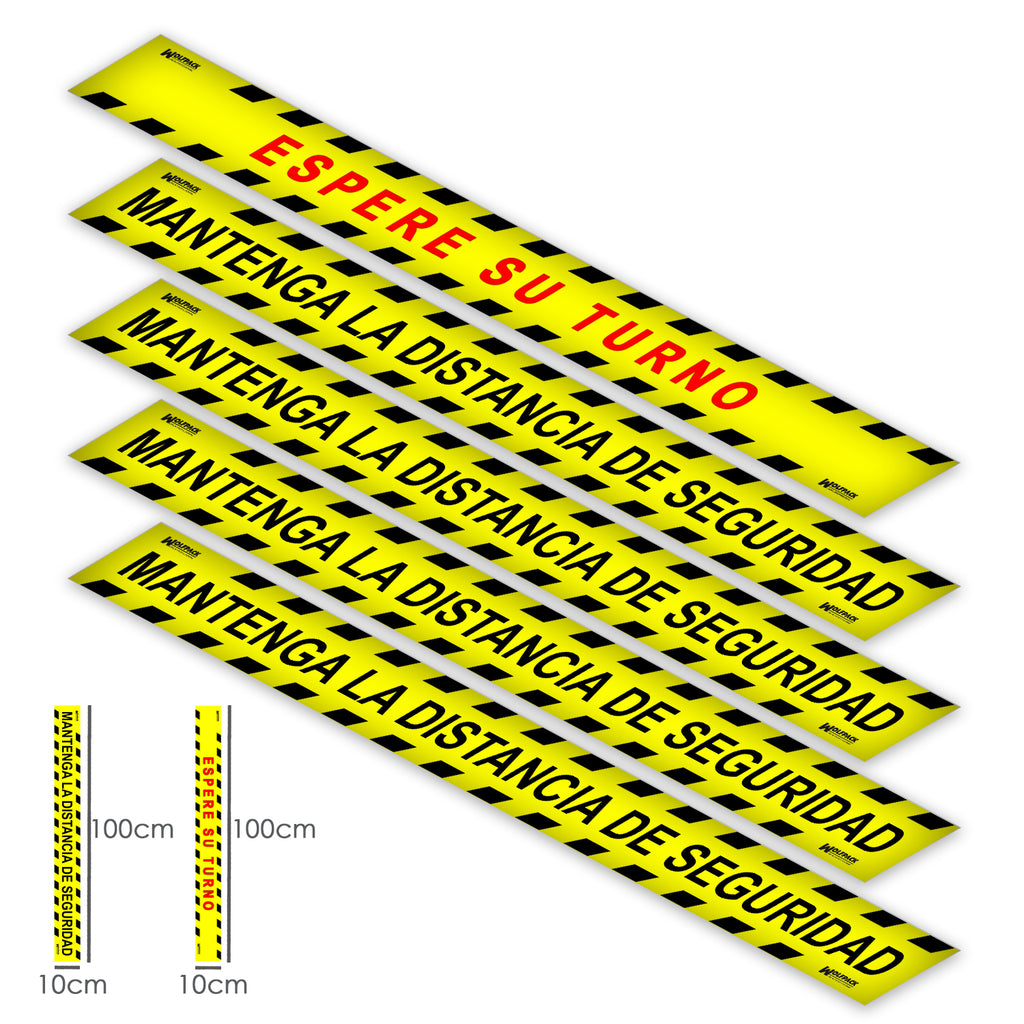 Rotulacion Suelo Distancia Seguridad y Turno. Pegatinas Señalizacion. 5 Unidades Rectangulares, 10 x 100 cm