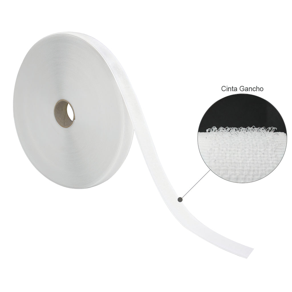 Cinta Velcro Gancho Con Adhesivo Blanco Rollo 25 metros