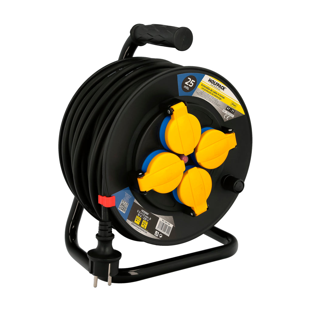 Extensible Industrial 25 metros Protección IP44 Con Tapas, Extensible Electrico, Enrollacables, Alaragadera, Cable Extensible